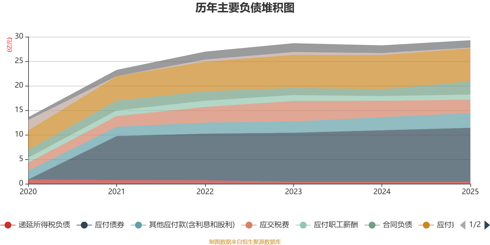 负债重大变化方面,截至2025年末,公司合同负债较上年末增加91.55%,占公司总资产比重上升1.56个百分点;应付债券较上年末增加4.72%,占公司总资产比重上升0.91个百分点;应交税费较上年末减少18.97%,占公司总资产比重下降0.64个百分点;其他应付款(含利息和股利)较上年末增加14.04%,占公司总资产比重上升0.52个百分点。