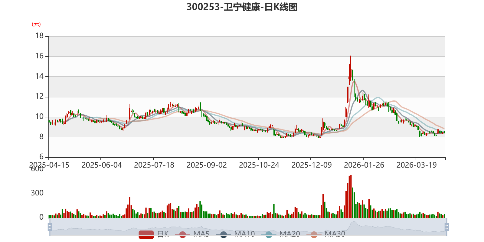 中证智能财讯卫宁健康(300253)4月15日披露2025年年度报告。2025年,公司实现营业总收入21.06亿元,同比下降24.30%;归母净利润亏损3.74亿元,上年同期盈利8789.32万元;扣非净利润亏损3.55亿元,上年同期盈利1.24亿元;经营活动产生的现金流量净额为5.55亿元,同比增长36.28%;报告期内,卫宁健康基本每股收益为-0.1692元,加权平均净资产收益率为-6.44%。