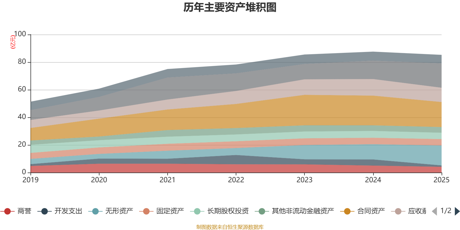 资产重大变化方面,截至2025年末,公司货币资金较上年末增加31.9%,占公司总资产比重上升5.42个百分点;无形资产较上年末增加30.89%,占公司总资产比重上升4.35个百分点;开发支出较上年末减少76.96%,占公司总资产比重下降3.88个百分点;合同资产较上年末减少15.76%,占公司总资产比重下降3.31个百分点。
