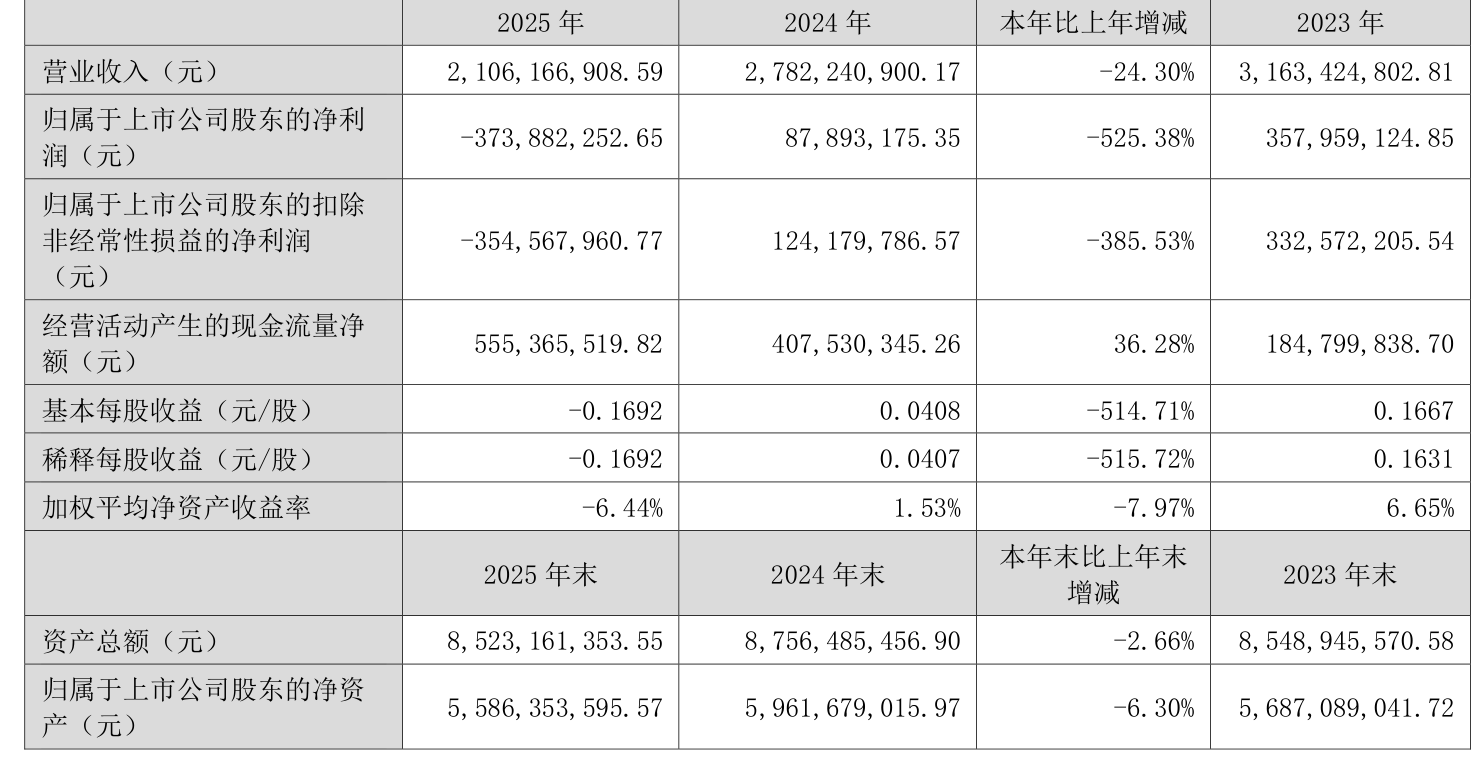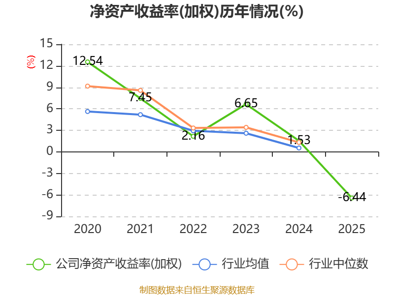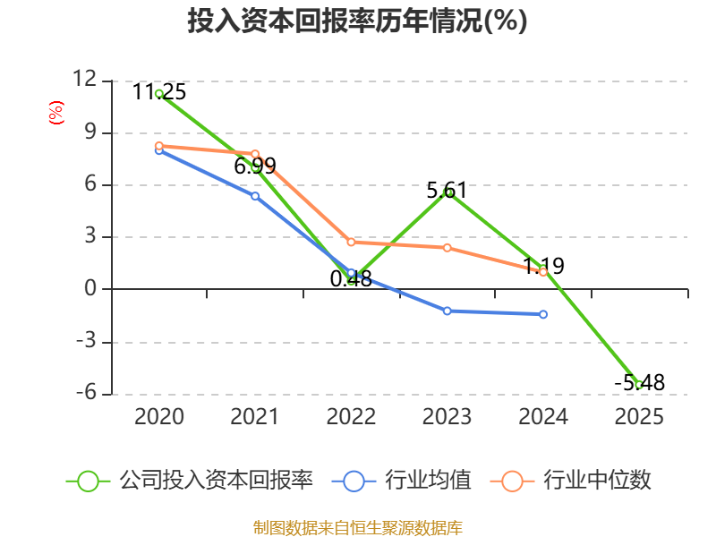 数据显示,2025年公司加权平均净资产收益率为-6.44%,较上年同期下降7.97个百分点。公司2025年投入资本回报率为-5.48%,较上年同期下降6.67个百分点。