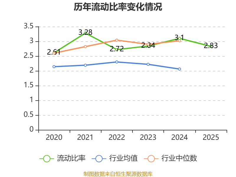 2025年,公司流动比率为2.83,速动比率为2.77。