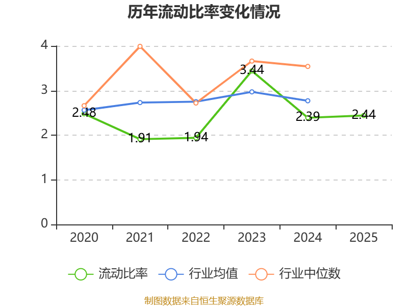 2025年,公司流动比率为2.44,速动比率为2.08。