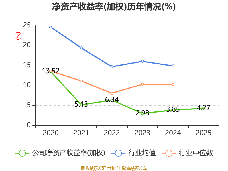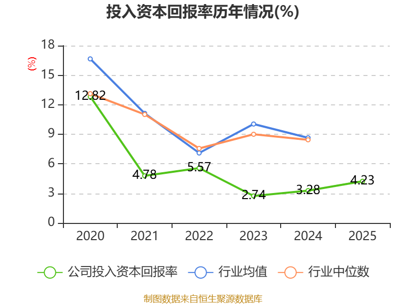 数据显示,2025年公司加权平均净资产收益率为4.27%,较上年同期上升0.42个百分点。公司2025年投入资本回报率为4.23%,较上年同期上升0.95个百分点。
