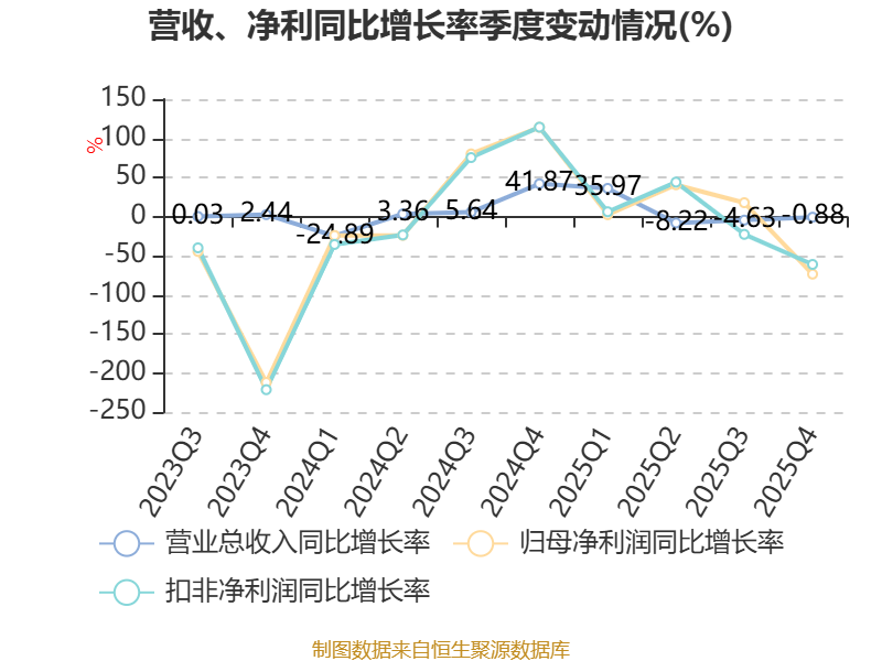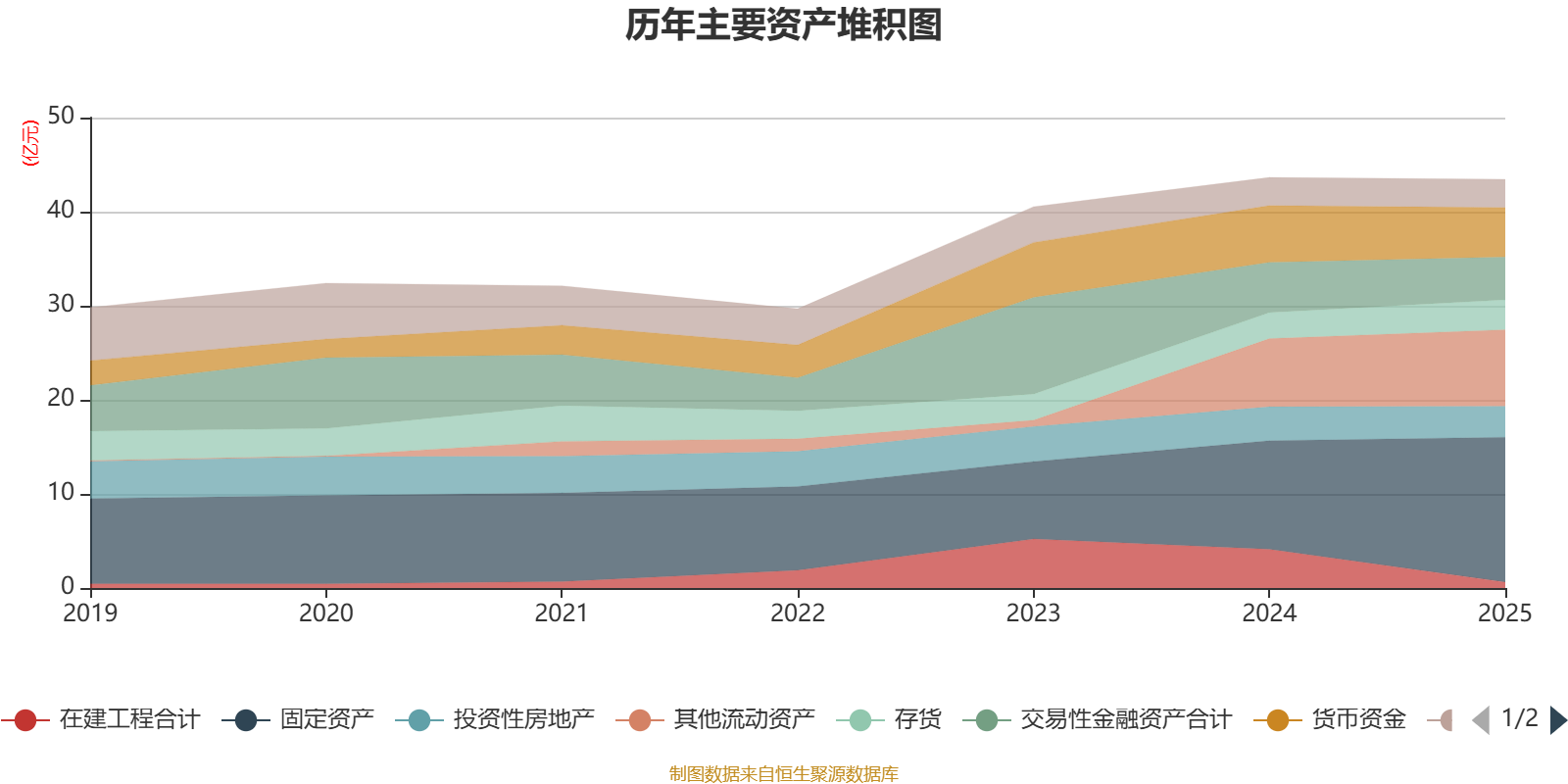 资产重大变化方面,截至2025年末,公司固定资产较上年末增加33.32%,占公司总资产比重上升8.97个百分点;在建工程合计较上年末减少84.66%,占公司总资产比重下降7.97个百分点;其他流动资产较上年末增加12.31%,占公司总资产比重上升2.13个百分点;交易性金融资产合计较上年末减少14.96%,占公司总资产比重下降1.79个百分点。