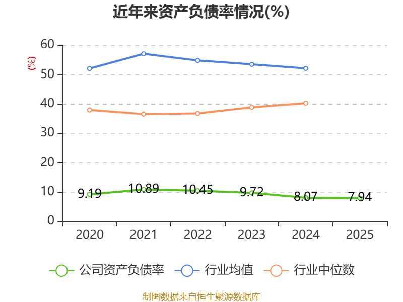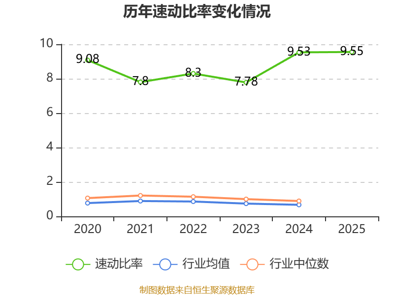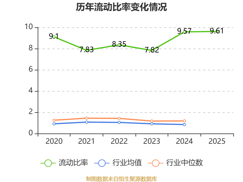 2025年,公司流动比率为9.61,速动比率为9.55。