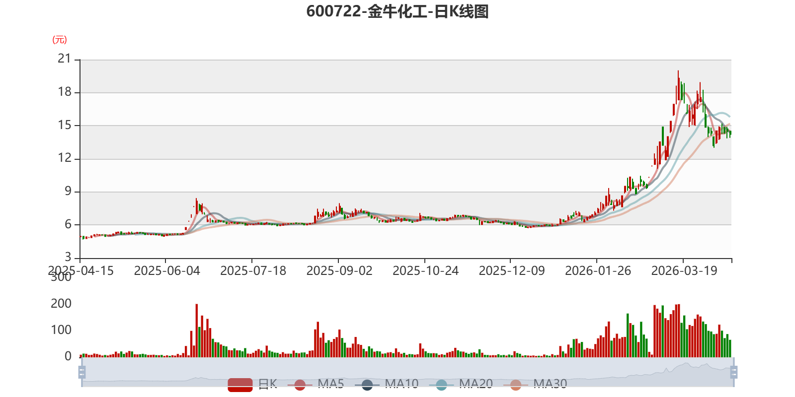 以4月14日收盘价计算,金牛化工目前市盈率(TTM)约为201.99倍,市净率(LF)约7.76倍,市销率(TTM)约20.61倍。