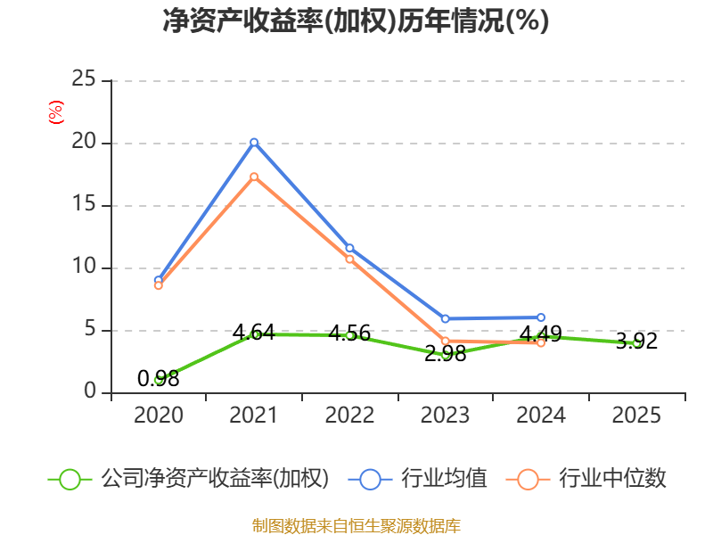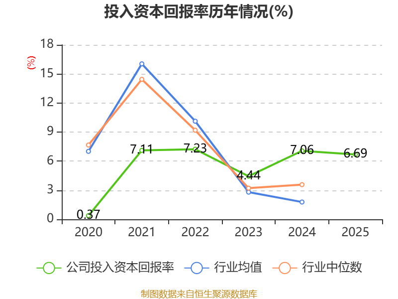 数据显示,2025年公司加权平均净资产收益率为3.92%,较上年同期下降0.57个百分点。公司2025年投入资本回报率为6.69%,较上年同期下降0.37个百分点。
