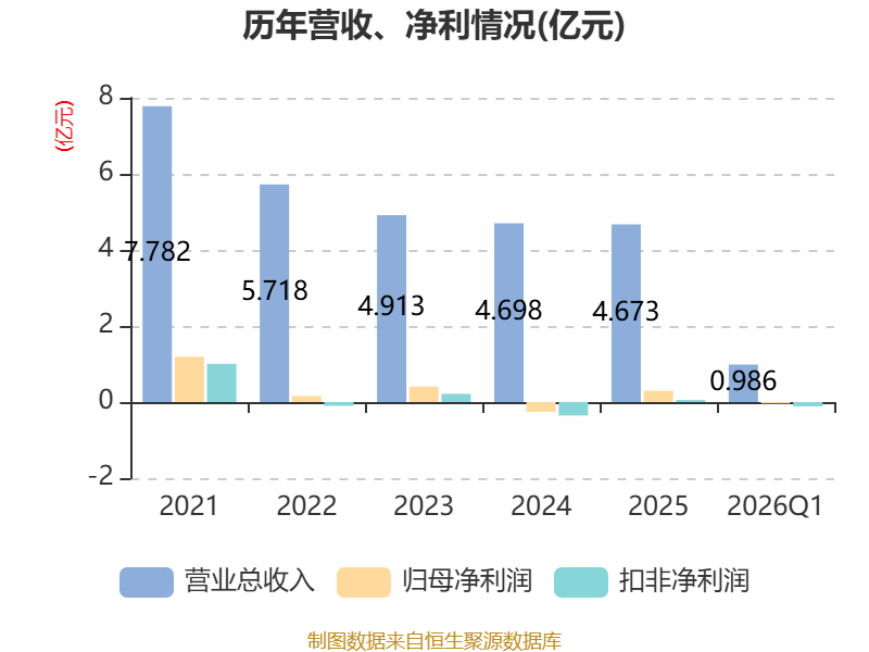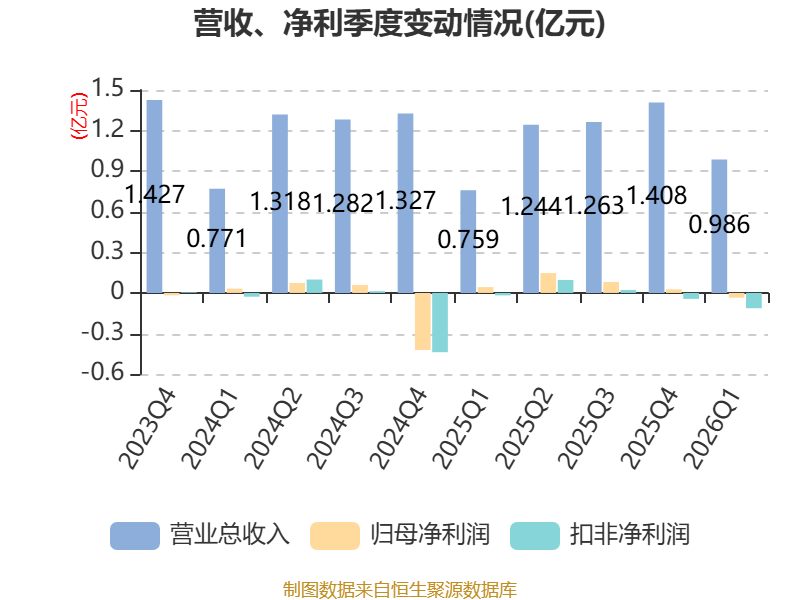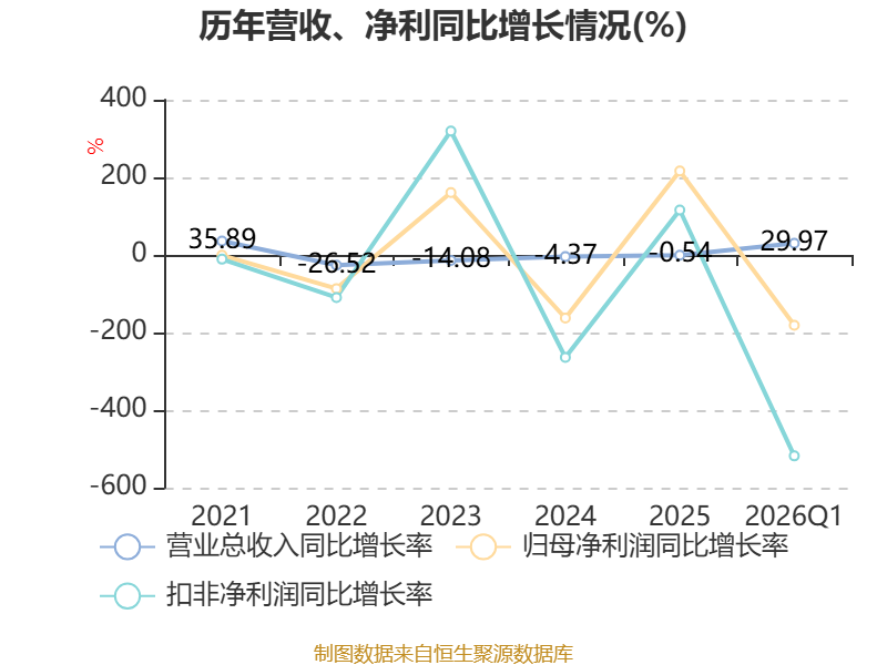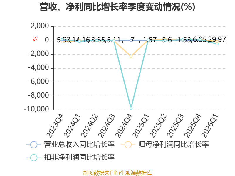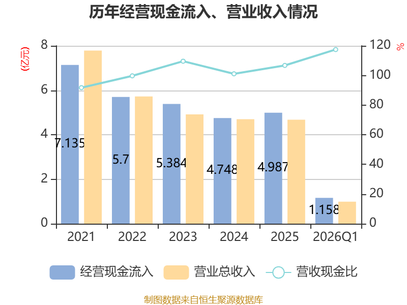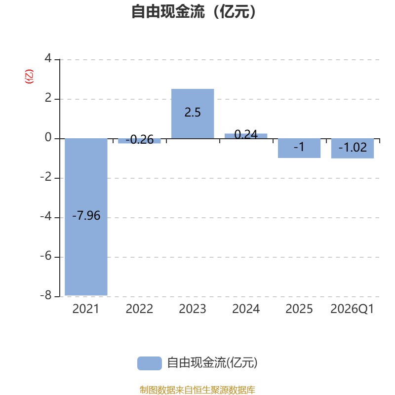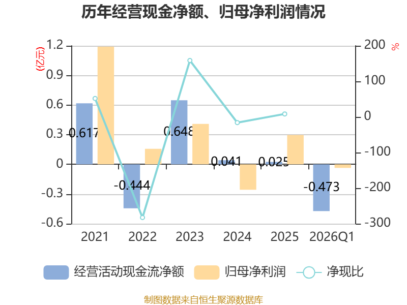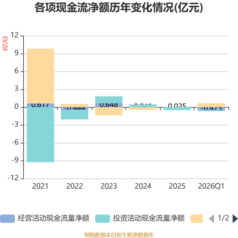 截至2026年一季度末,公司经营活动现金流净额为-4733.1万元,同比增加648.8万元;筹资活动现金流净额6633.84万元,同比增加6678.55万元;投资活动现金流净额-2105.58万元,上年同期为2743.93万元。