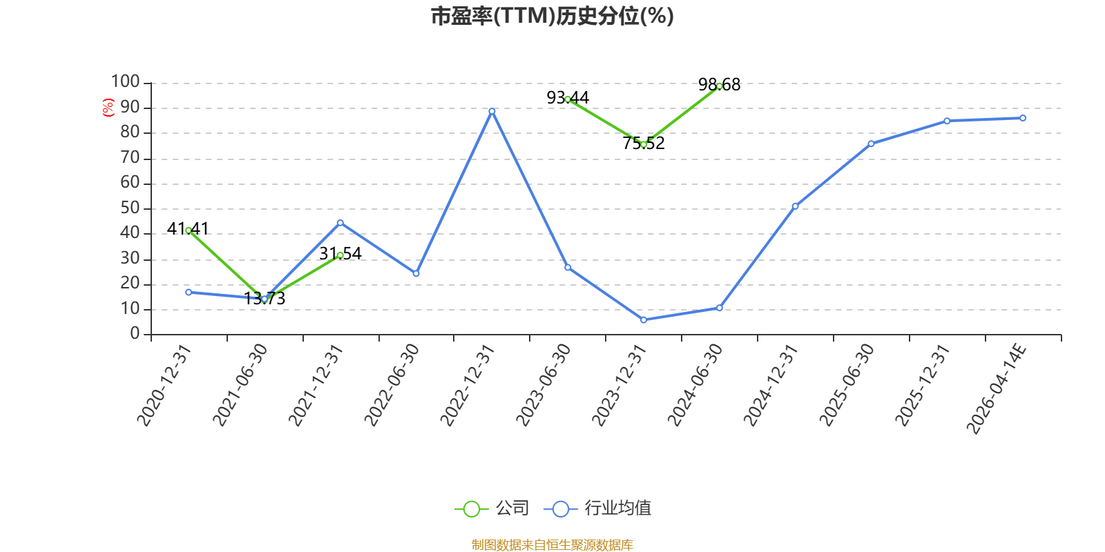 市盈率、市净率为负时,不显示当期分位数,会导致折线图中断。