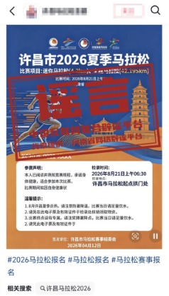 详情:近日,某平台账号发布关于“许昌市2026夏季马拉松”的赛事公告,引发关注。经河南省许昌市体育局核实,许昌市2026年度没有关于举办马拉松赛事的规划、申报及备案安排,确认该消息为不实信息。另据中国田径协会2025年12月19日公布的《2026年全国马拉松赛事目录》显示,河南省2026年计划举办5场马拉松赛事,均不在许昌市举办。(来源:“清朗河南”微信公众号、网信许昌)
