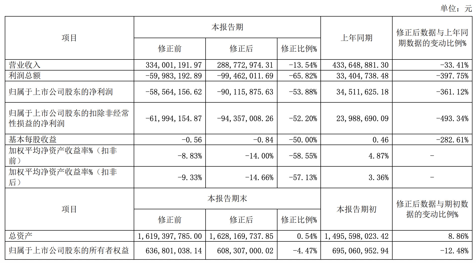 公告显示,科达自控营收修正比例为-13.54%,修正后为2.89亿元;净利润修正比例为-53.88%,修正后亏损9012万元;扣非净利润修正比例为-52.20%,修正后亏损9436万元。本次下修业绩后,公司营收、净利润、扣非净利润分别较2024年同期减少33.41%、361.12%、493.34%。