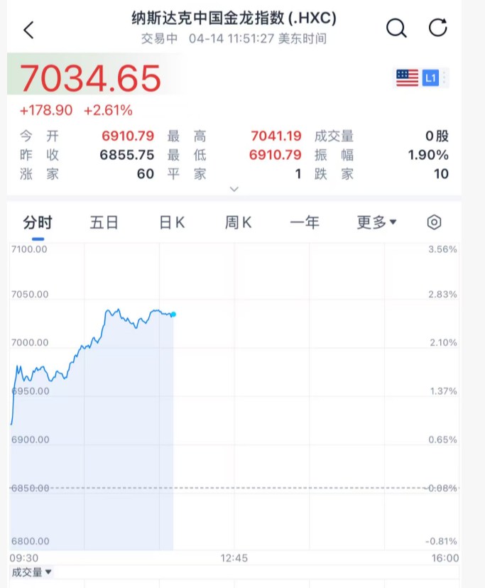4月14日晚间,美股低开高走,持续拉升,截至发稿,道指涨超300点,纳斯达克指数涨约1.6%,标普500指数涨约1%!市场基本无视了此前美伊和平谈判破裂的消息,投资者仍对双方最终达成协议保持乐观。