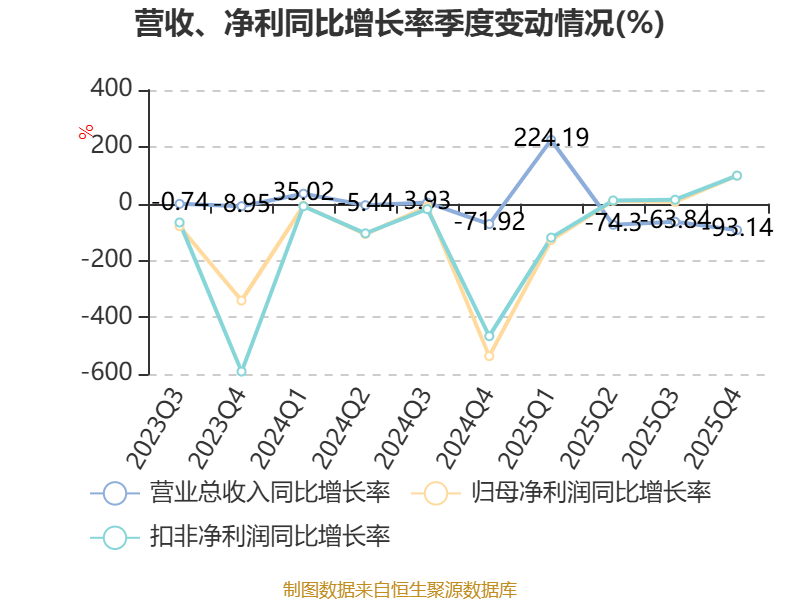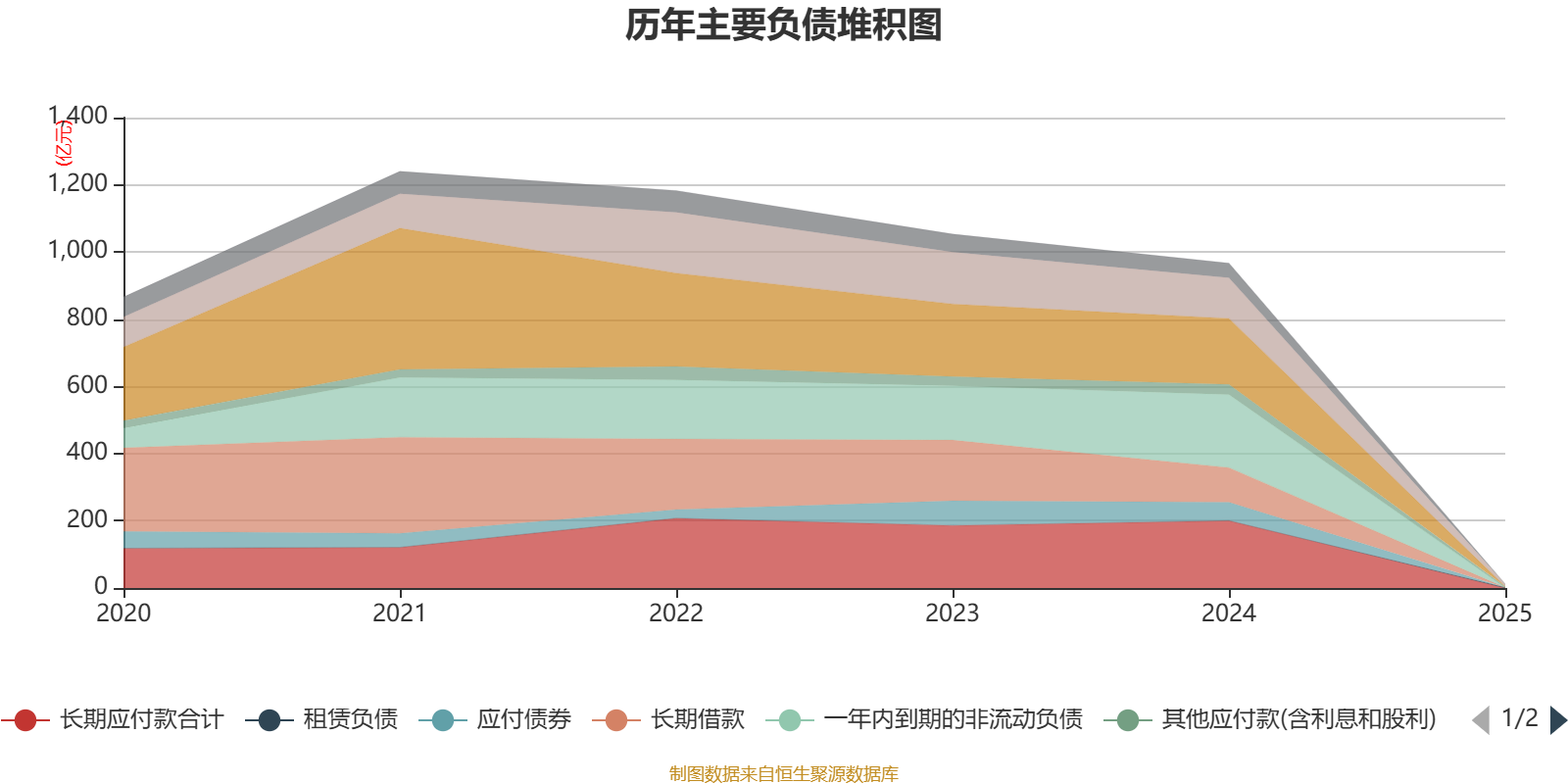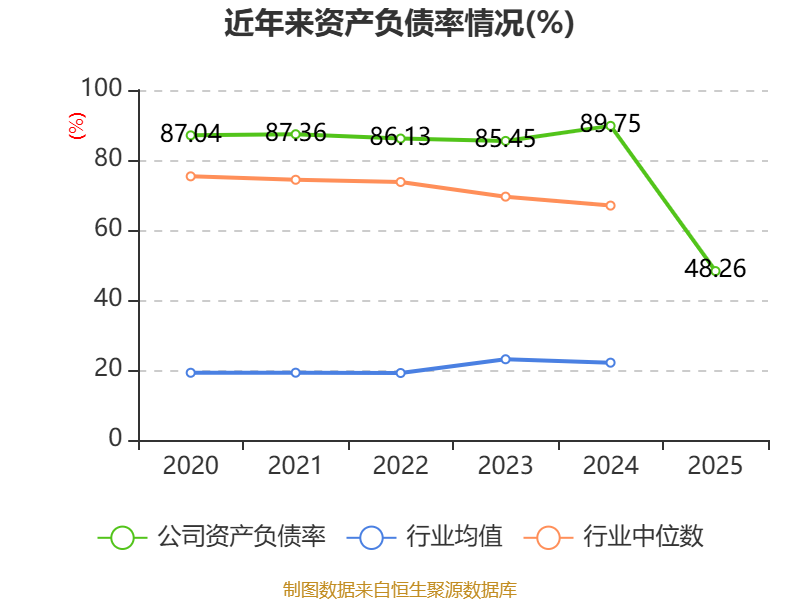 负债重大变化方面,截至2025年末,公司一年内到期的非流动负债较上年末减少99.86%,占公司总资产比重下降18.88个百分点;长期应付款合计较上年末减少99.98%,占公司总资产比重下降18.45个百分点;应付票据及应付账款较上年末减少94.64%,占公司总资产比重上升16.01个百分点;合同负债较上年末减少99.63%,占公司总资产比重下降15.17个百分点。
