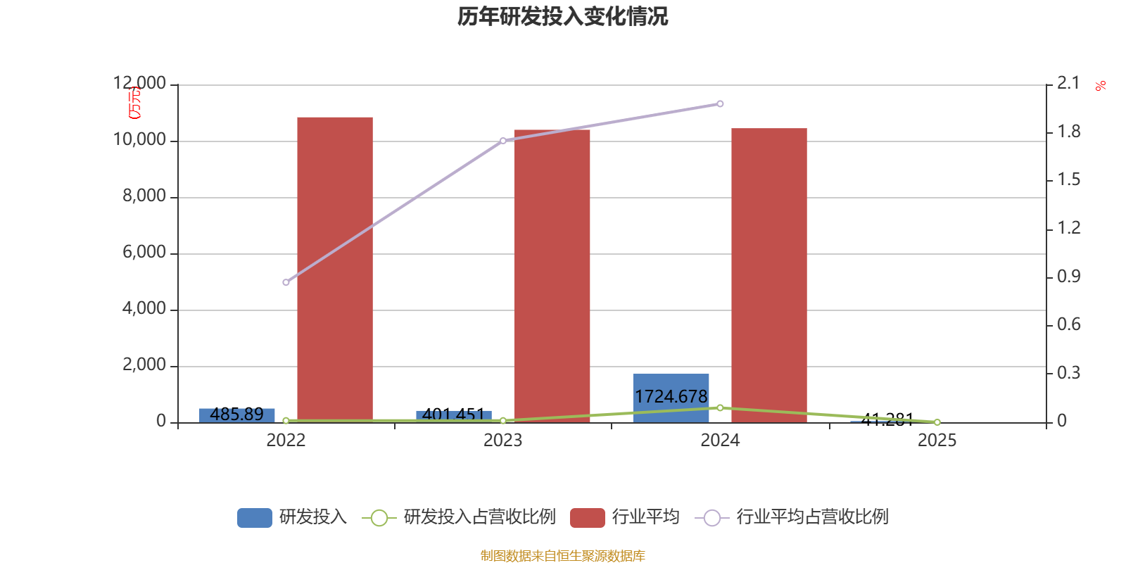 2025年全年,公司研发投入金额为41.28万元,同比下降97.61%;研发投入占营业收入比例为0%,相比上年同期下降0.09个百分点。