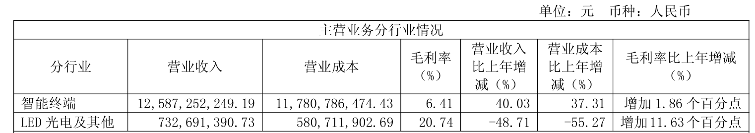 具体业务方面,2025年,公司智能终端业务订单实现较大幅度增长,较去年同期增长40.03%,毛利率提升约1.86个百分点;LED光电板块收入规模保持稳定,毛利率提升约3.23个百分点。