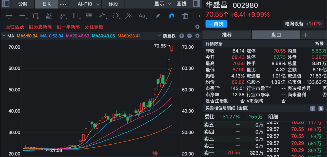 CPO概念延续强势,华盛昌(002980)实现12天6板,续创历史新高,中际旭创、剑桥科技、瑞斯康达、罗博特科、铭普光磁、新易盛等跟涨。