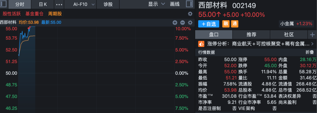 商业航天概念再度活跃,西部材料涨停,电科蓝天、信科移动、新雷能涨幅靠前。