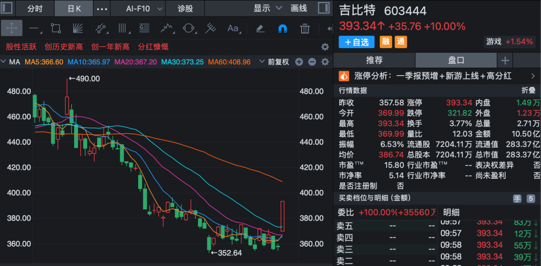 游戏板块震荡反弹,吉比特涨停,迅游科技、三七互娱、巨人网络、恺英网络、完美世界涨幅靠前。