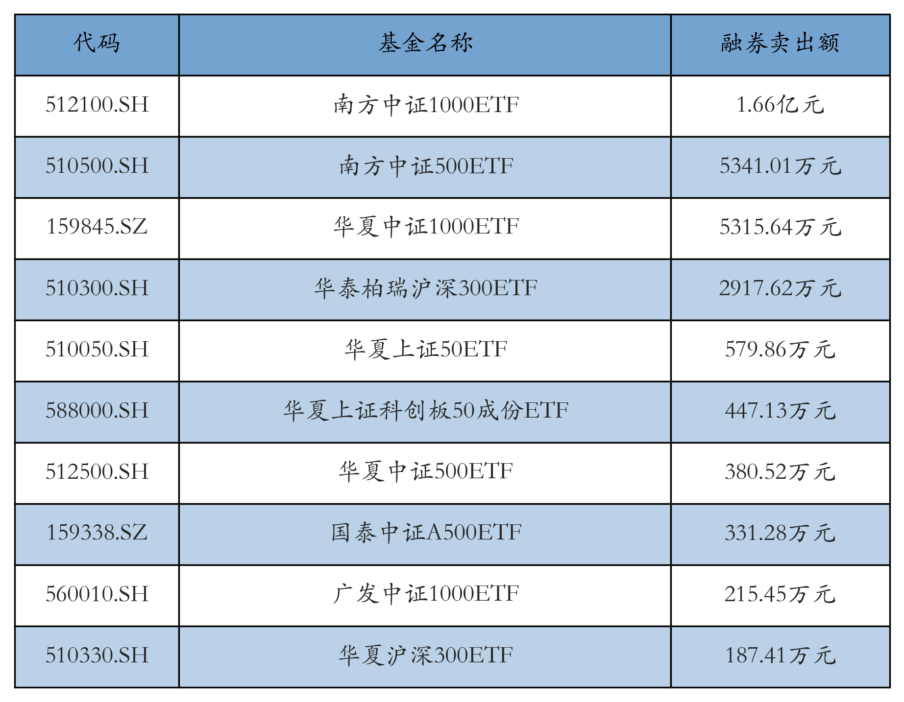 ETF融券卖出额