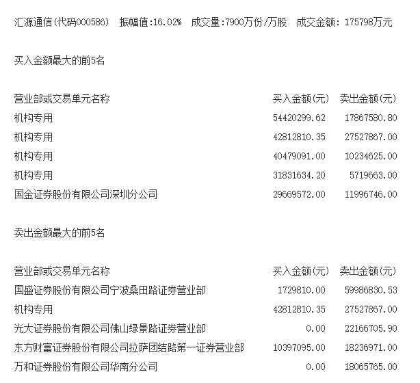 净买入资金超过1亿元 机构高位抢筹汇源通信为哪般?