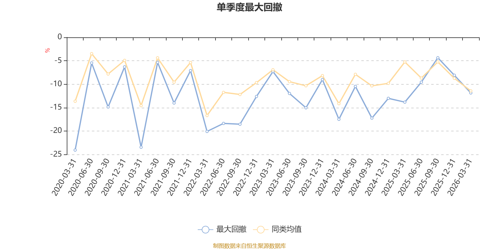 截至4月14日,基金近三年最大回撤为38.8%,同类可比基金排名985/1263。单季度最大回撤出现在2020年一季度,为24.05%。