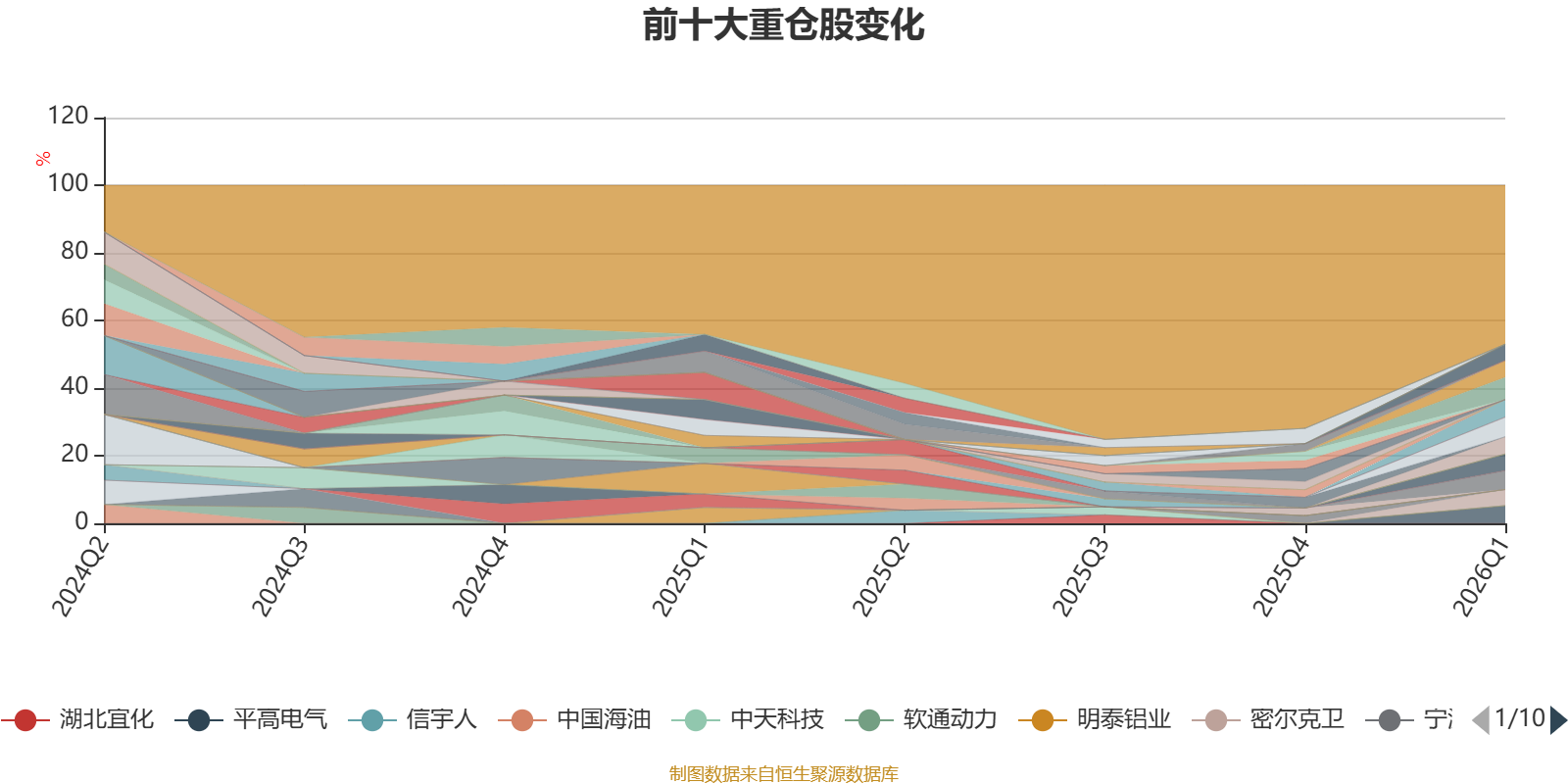 截至2026年一季度末,基金十大重仓股分别是紫金矿业、九丰能源、神火股份、平高电气、许继电气、山东黄金、巨化股份、西子洁能、正泰电器、密尔克卫。