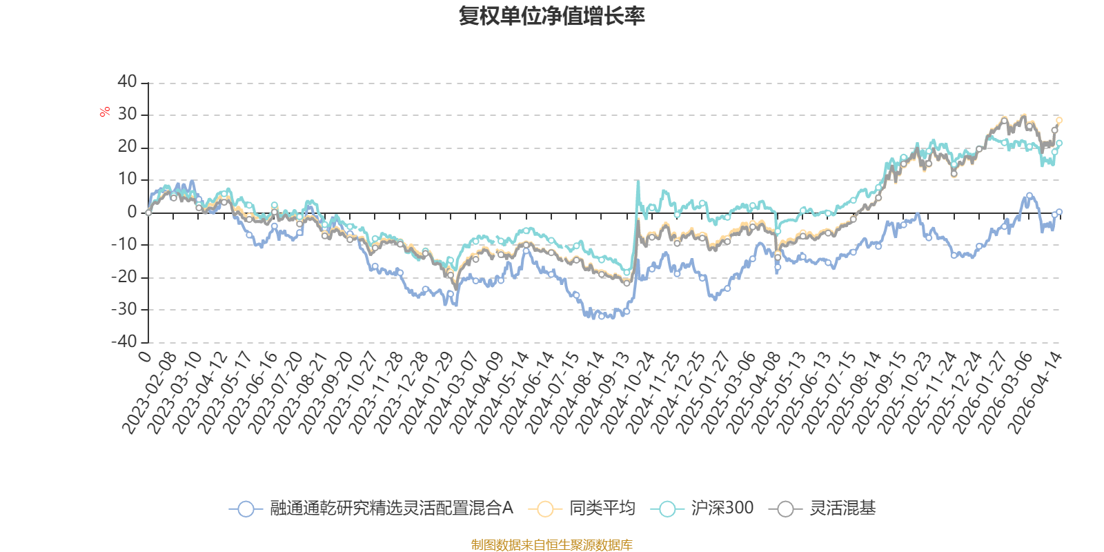 截至4月14日,融通通乾研究精选灵活配置混合A近三个月复权单位净值增长率为6.01%,位于同类可比基金245/1287;近半年复权单位净值增长率为4.18%,位于同类可比基金806/1286;近一年复权单位净值增长率为13.40%,位于同类可比基金963/1286;近三年复权单位净值增长率为-3.91%,位于同类可比基金1063/1286。