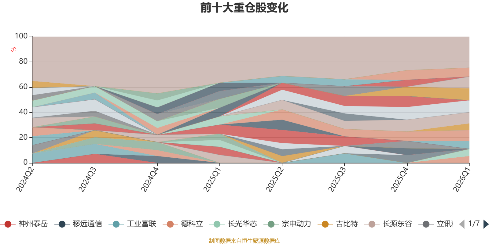 该基金持股集中度较高。截至2026年一季度末,基金十大重仓股分别是中际旭创、天孚通信、罗博特科、新易盛、源杰科技、长芯博创、炬光科技、长光华芯、德科立、光库科技。