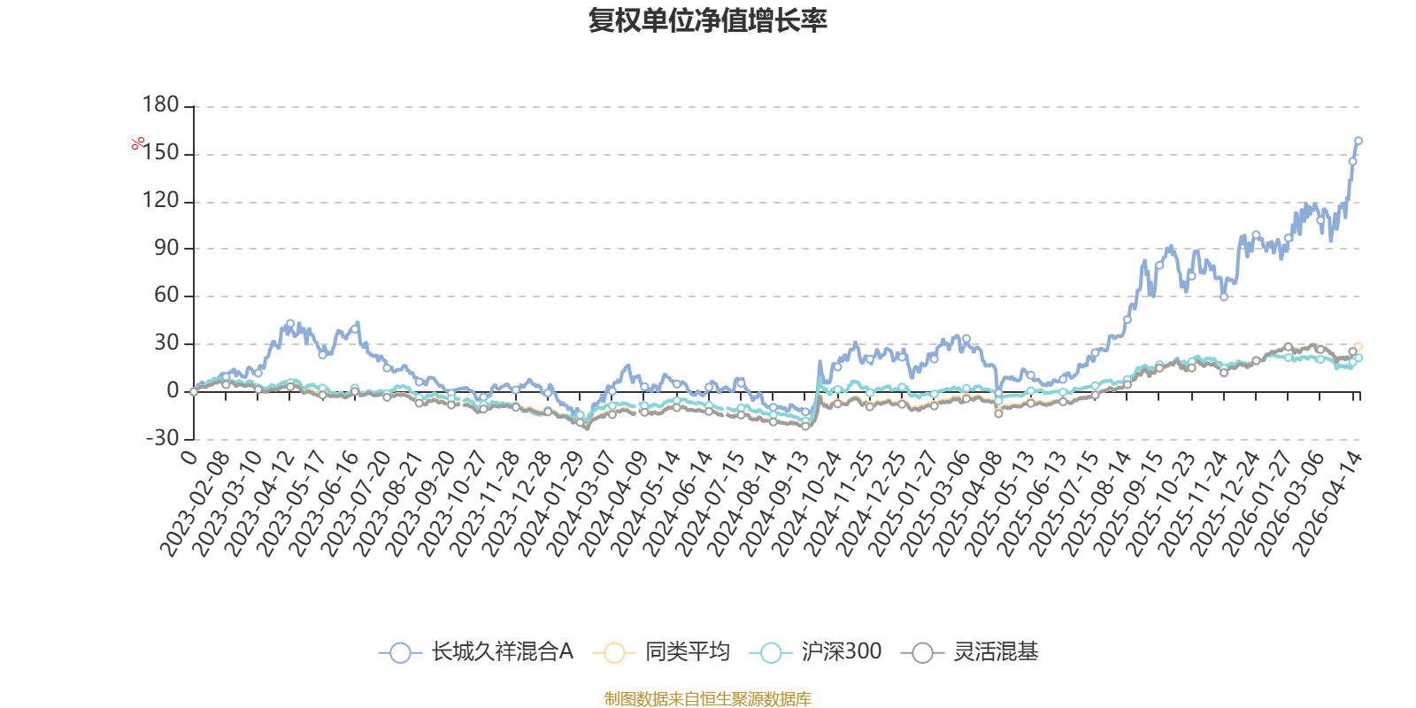 截至4月14日,长城久祥混合A近三个月复权单位净值增长率为34.93%,位于同类可比基金8/1287;近半年复权单位净值增长率为56.20%,位于同类可比基金16/1286;近一年复权单位净值增长率为136.84%,位于同类可比基金23/1286;近三年复权单位净值增长率为87.69%,位于同类可比基金47/1286。