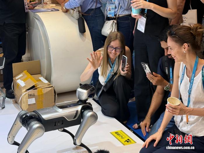 4月15日,广东广州,第139届广交会开幕,机器狗等创新产品吸引海外采购商关注。中新社记者蔡敏婕摄