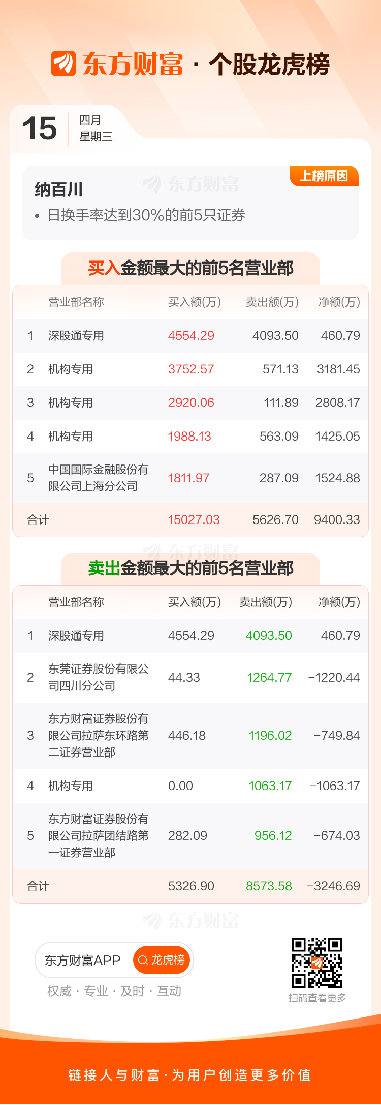 纳百川(301667)龙虎榜数据(04-15)