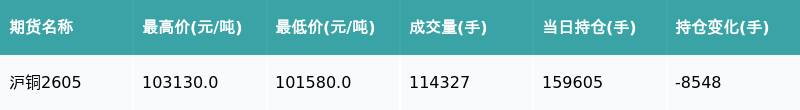南财智讯4月15日电,盘后期货数据显示,上海期货交易所的沪铜主力合约收涨1.38%,收盘报102090.0元/吨,日内资金流出8.66亿元。其他相关指标见下表: