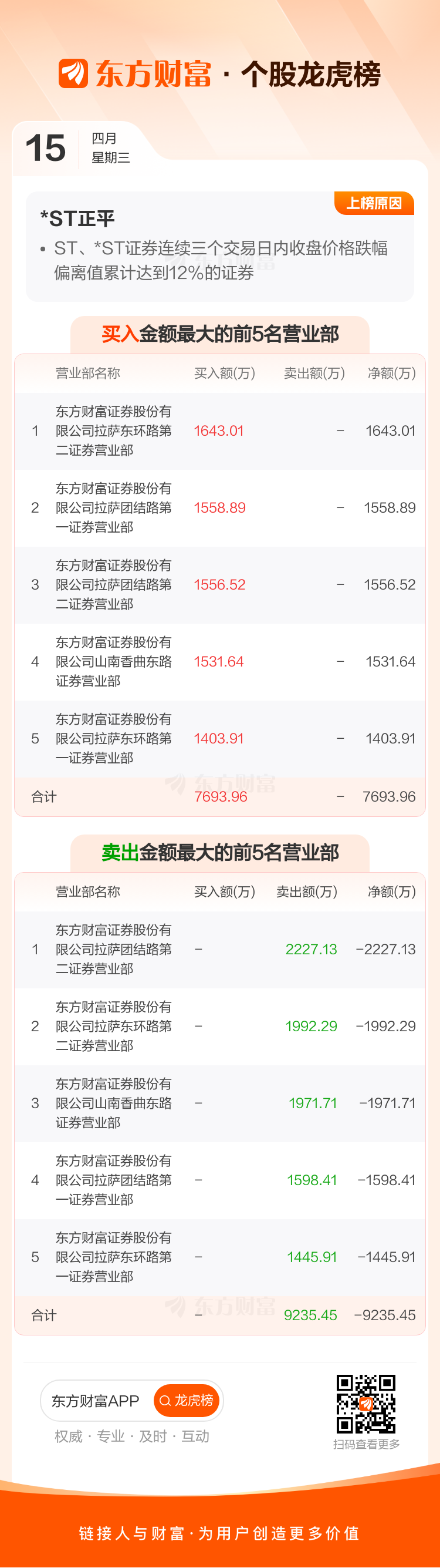 *ST正平(603843)龙虎榜数据(04-15)