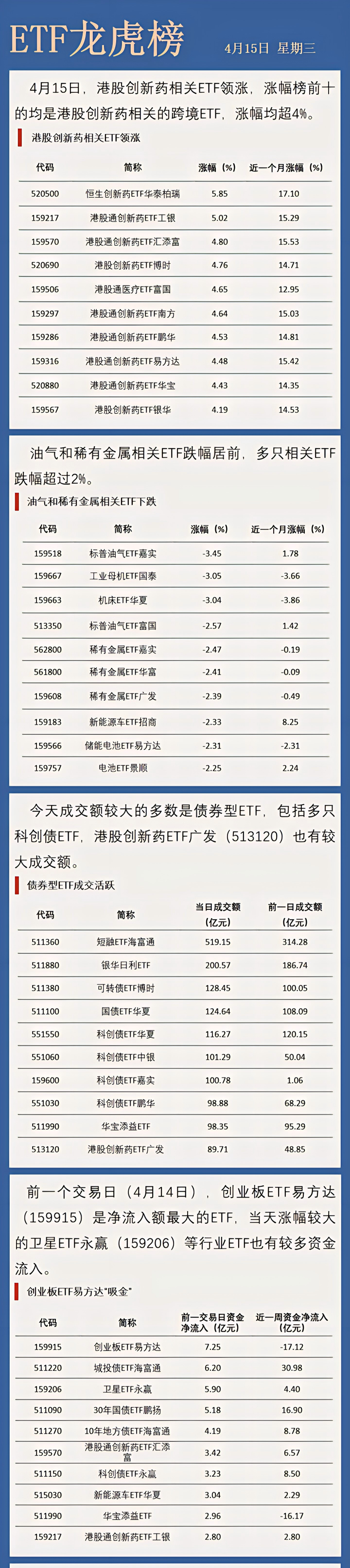 【ETF龙虎榜】港股创新药相关ETF领涨,科创债ETF成交活跃