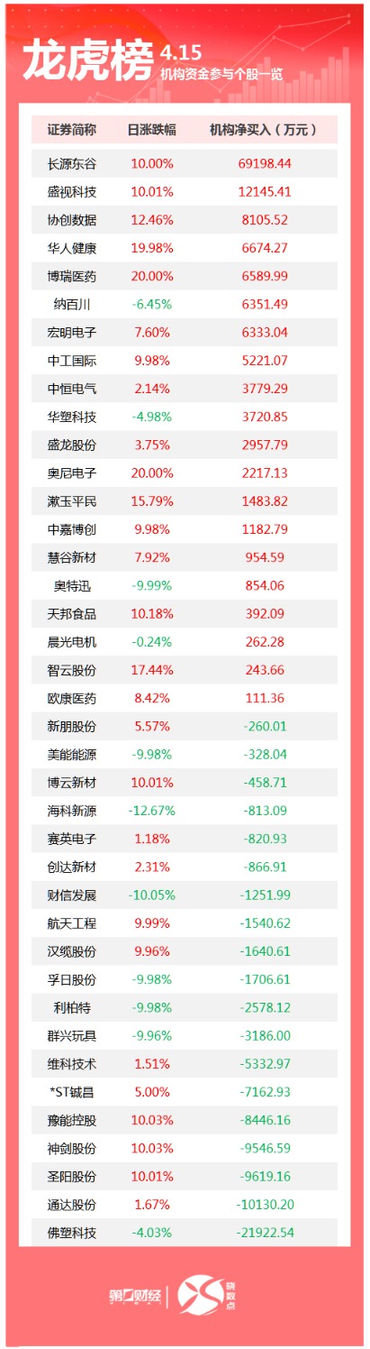 龙虎榜丨机构今日买入这20股,卖出佛塑科技2.19亿元