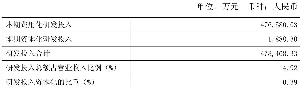 2025年全年,公司研发投入金额为47.85亿元,同比增长3.67%;研发投入占营业收入比例为4.92%,相比上年同期上升0.2个百分点。此外,公司全年研发投入资本化率为0.39%。