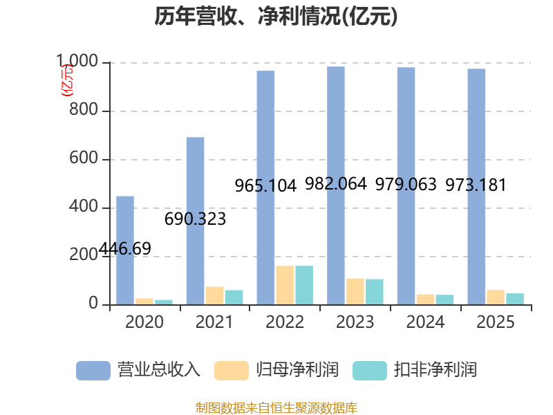 中证智能财讯特变电工(600089)4月16日披露2025年年度报告。2025年,公司实现营业总收入973.18亿元,同比下降0.60%;归母净利润59.54亿元,同比增长43.69%;扣非净利润45.54亿元,同比增长15.64%;经营活动产生的现金流量净额为93.31亿元,同比下降27.75%;报告期内,特变电工基本每股收益为1.161元,加权平均净资产收益率为8.75%。公司2025年度分配预案为:拟向全体股东每10股派现3.6元(含税)。