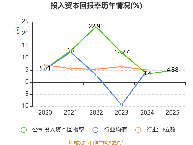 数据显示,2025年公司加权平均净资产收益率为8.75%,较上年同期上升2.3个百分点。公司2025年投入资本回报率为4.88%,较上年同期上升1.48个百分点。