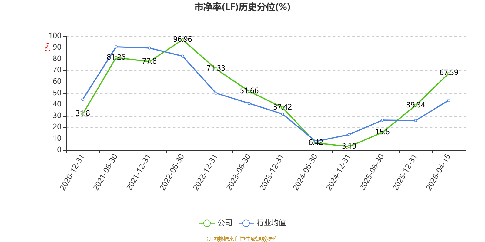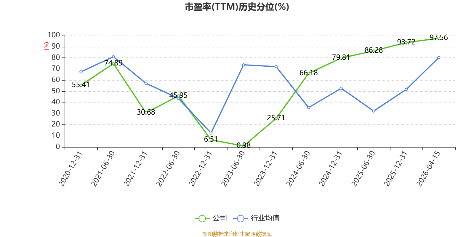 市盈率、市净率为负时,不显示当期分位数,会导致折线图中断。