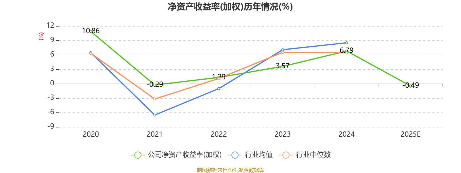 数据显示,2025年公司加权平均净资产收益率为-0.49%,较上年同期下降7.28个百分点。