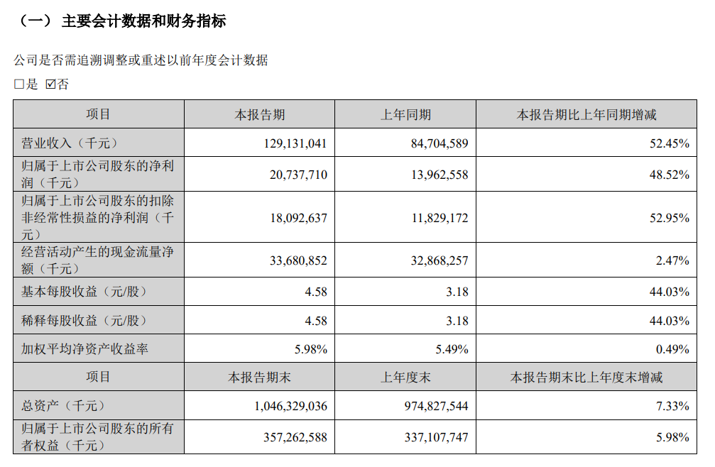 宁德时代:一季度净利润207.38亿元 同比增长48.52%