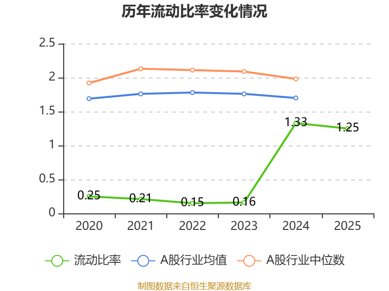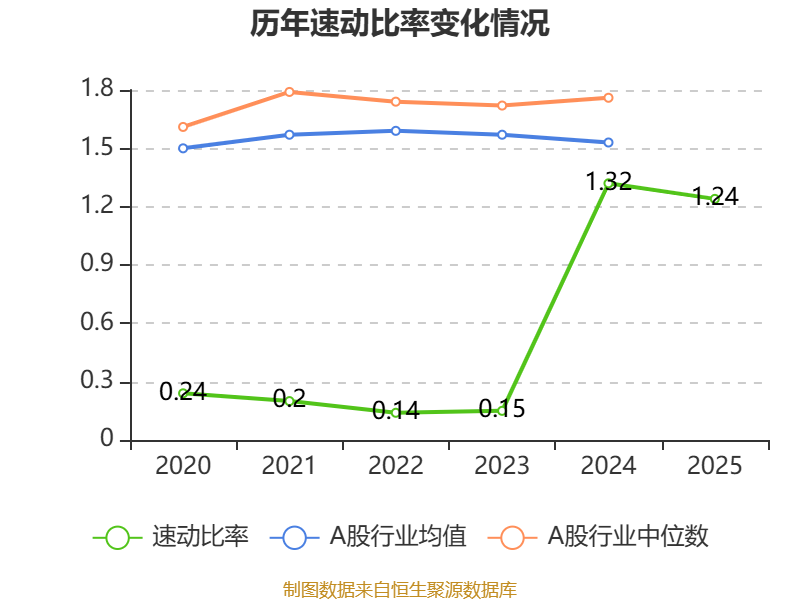 2025年,公司流动比率为1.25,速动比率为1.24。