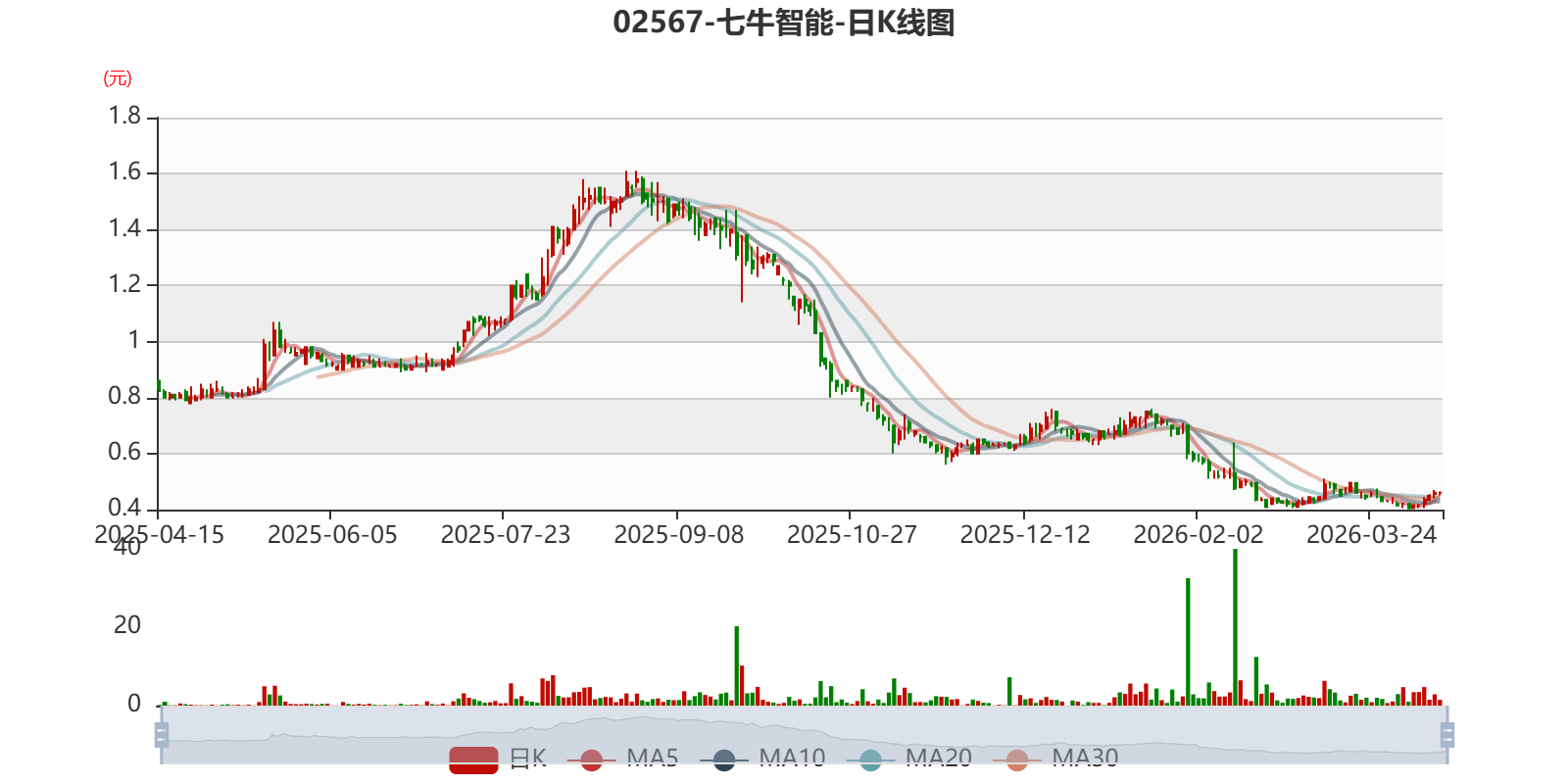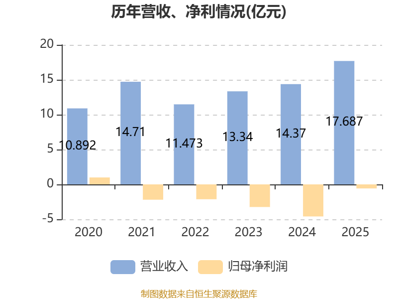 中证智能财讯七牛智能(02567)4月15日披露2025年度报告。报告期内,公司实现营业收入17.69亿元,同比增长23.08%;归母净利润亏损5787万元,上年同期亏损4.59亿元;据报告显示,七牛智能基本每股收益为-0.03元,平均净资产收益率为-14.76%。