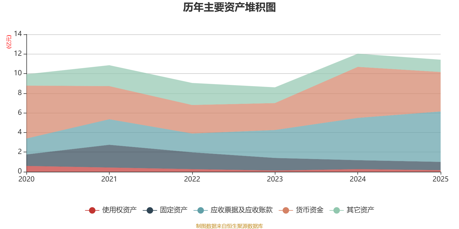 资产重大变化方面,截至2025年末,公司应收票据及应收账款较上期末增加19.18%,占公司总资产比重上升9.18个百分点;货币资金较上期末减少22.6%,占公司总资产比重下降7.96个百分点;使用权资产较上期末减少38.93%,占公司总资产比重下降0.78个百分点;交易性金融资产占公司总资产的0.49%,上期末为0。