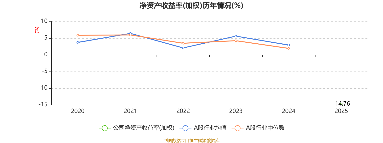 数据显示,2025年公司平均净资产收益率为-14.76%,。