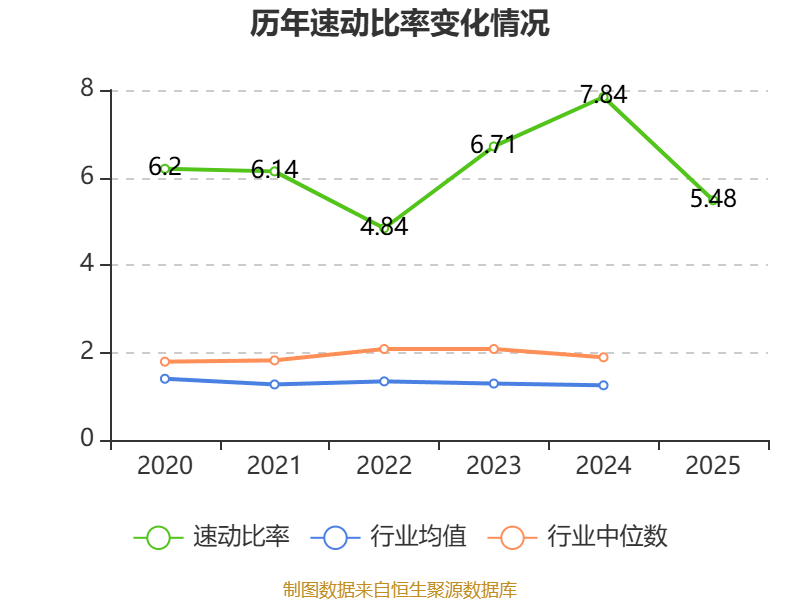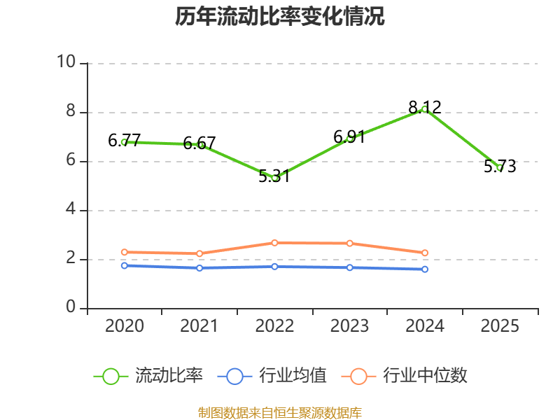 2025年,公司流动比率为5.73,速动比率为5.48。