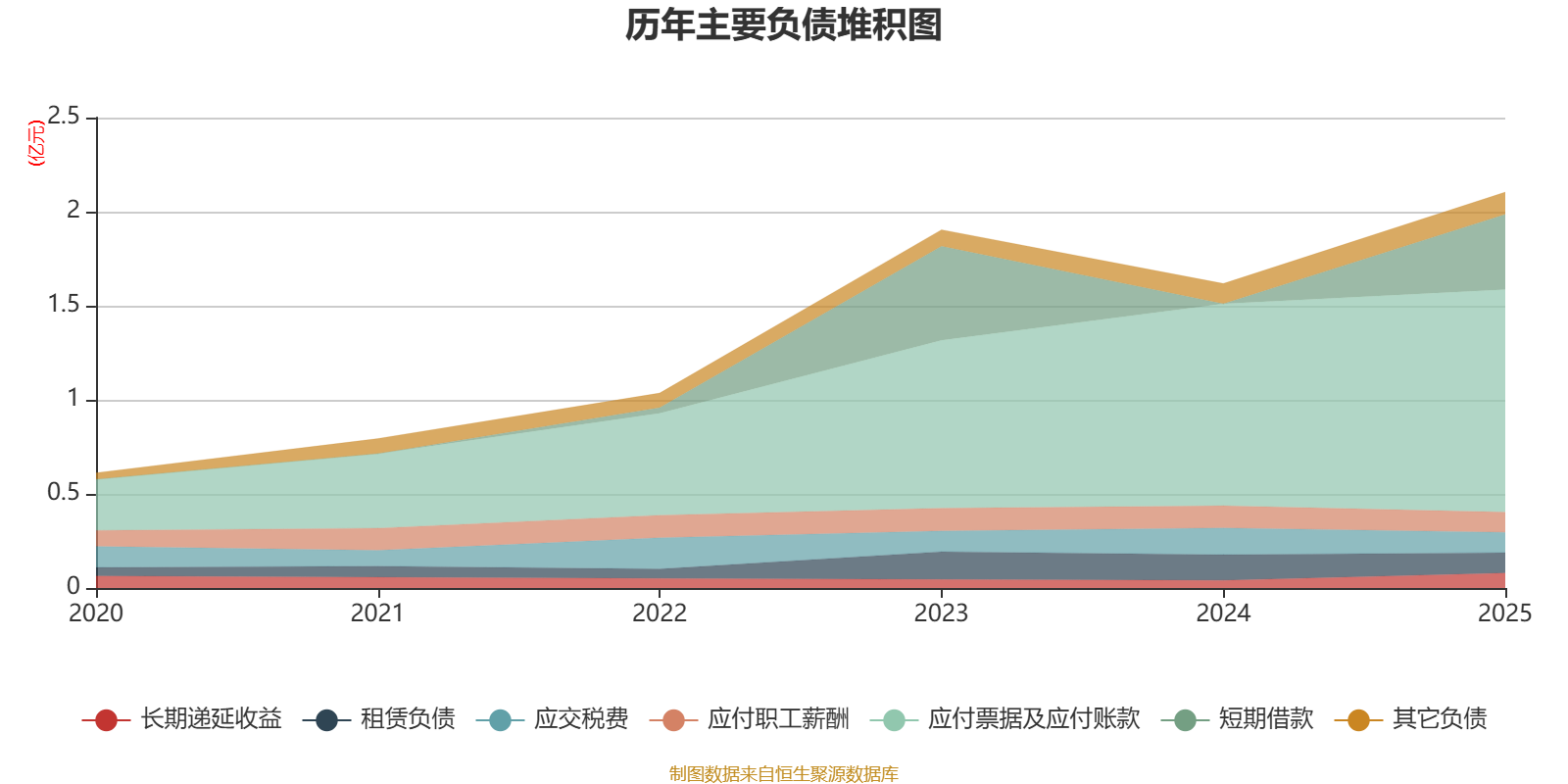 负债重大变化方面,截至2025年末,公司短期借款占公司总资产的2.14%,上年末为0;应付票据及应付账款较上年末增加10.28%,占公司总资产比重上升0.23个百分点;应交税费较上年末减少23.83%,占公司总资产比重下降0.23个百分点;租赁负债较上年末减少20.65%,占公司总资产比重下降0.2个百分点。