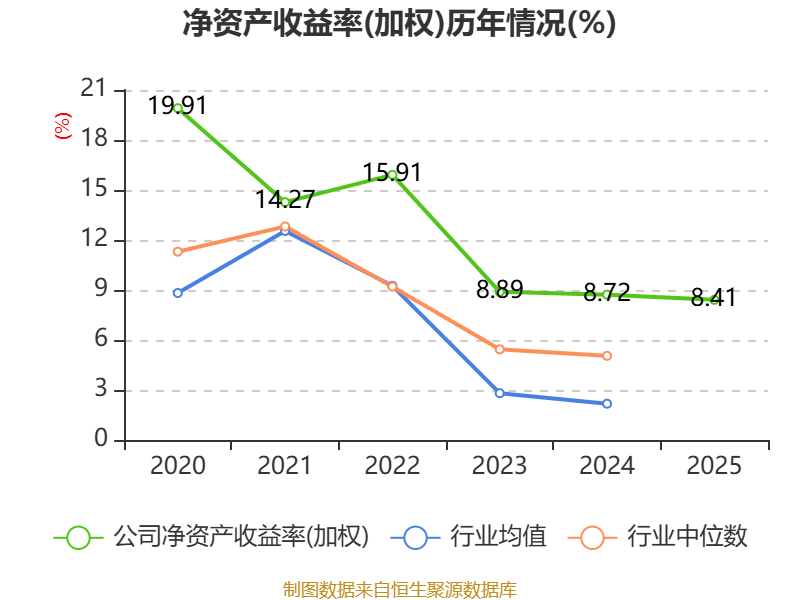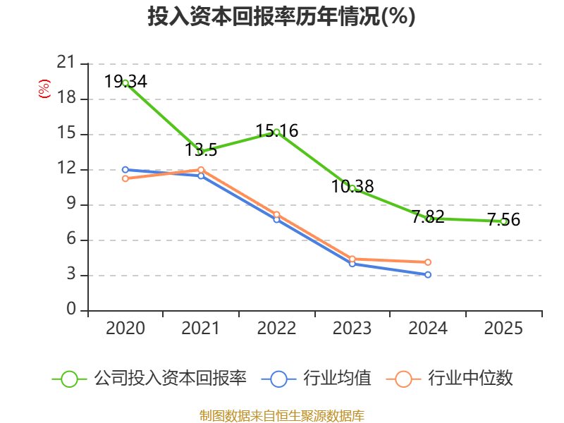 数据显示,2025年公司加权平均净资产收益率为8.41%,较上年同期下降0.31个百分点。公司2025年投入资本回报率为7.56%,较上年同期下降0.26个百分点。