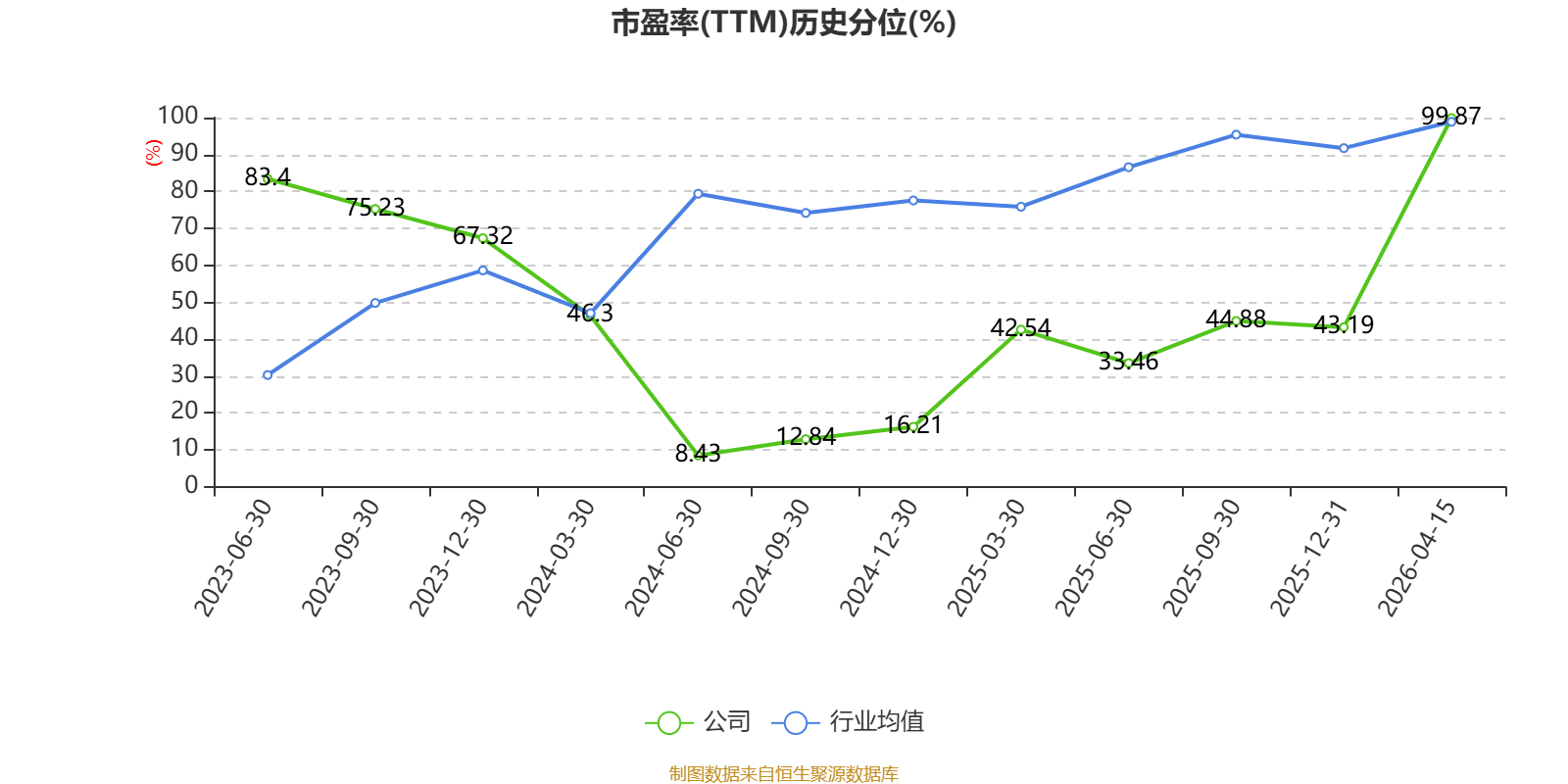 市盈率、市净率为负时,不显示当期分位数,会导致折线图中断。