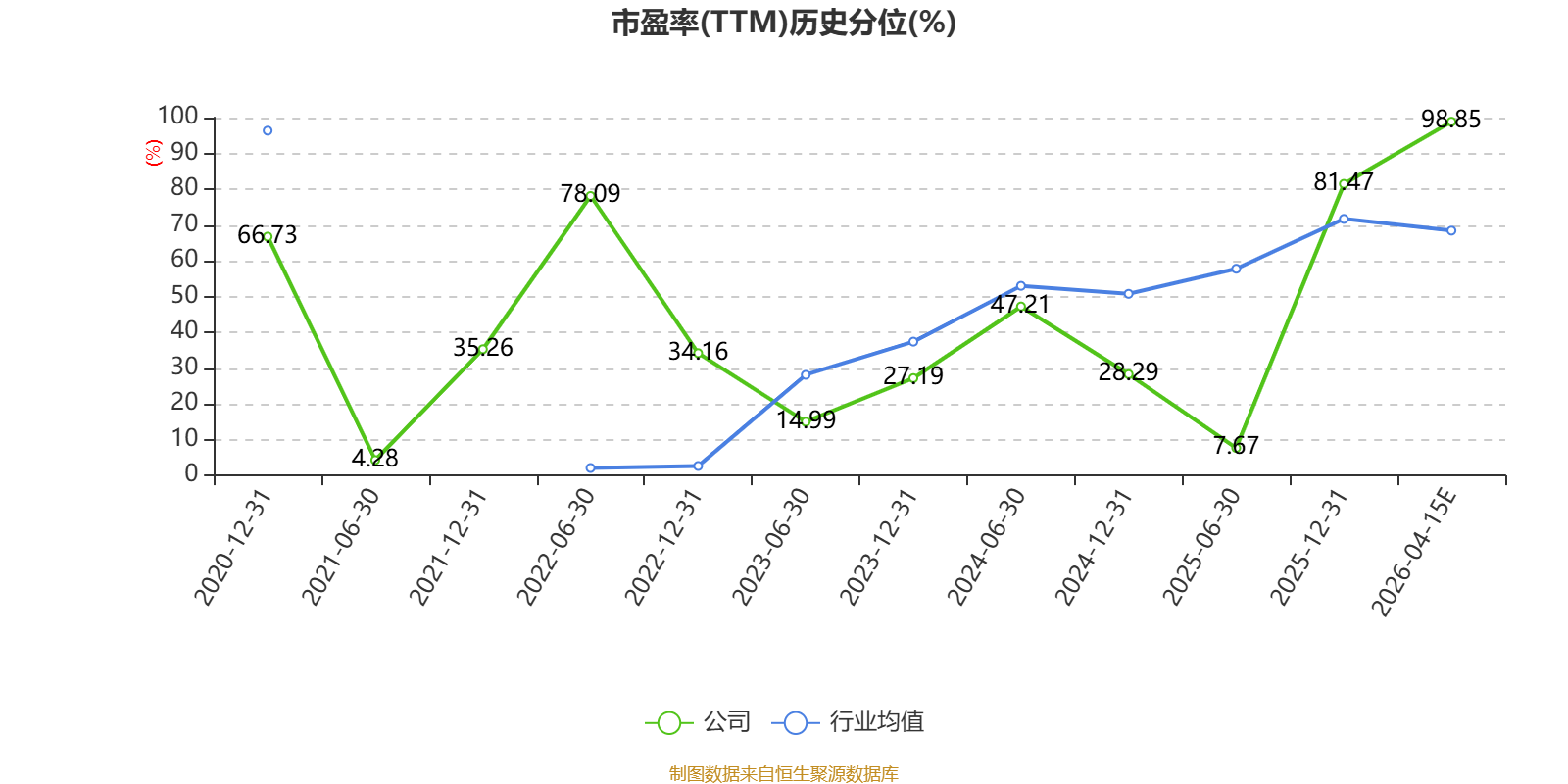 市盈率、市净率为负时,不显示当期分位数,会导致折线图中断。